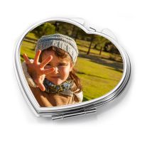 Overview: Heart shape compact mirror for sublimation! Specially open from the bottom right, one-sided subliamtion avialable while two mirrors on the insided. Small mirror only, can fit into your purse or pocket easily, Perfect gift for the ladies in like Valentine's Day, birthday or any anniversary. With customization added, it would be much of a personalize gift than the ones in the current market.