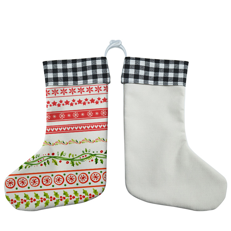Overview: A beautiful combination of festive and traditional, our stockings will look letter-perfect on any mantel. Perfect to hang on your mantel, fireplace or on your bed rails. This classic, white and black buffalo plaid Christmas stocking is sure to add a rustic appeal to your home this holiday season. The hanging Christmas stocking is mainly made of linen, this material is durable, safe to use, and designed with fine workmanship, enable you to use it to decorate your home in Christmas for a long time.